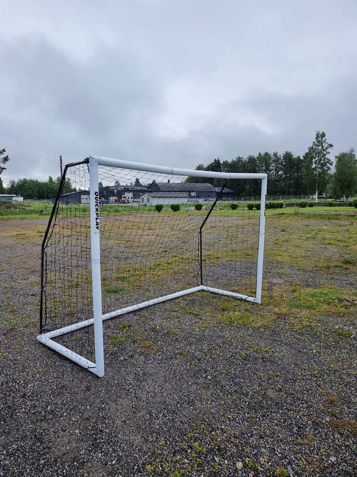 Stolparna och ribban är plast, quickplay betyder att de går att plocka ner och upp med enkla klick.